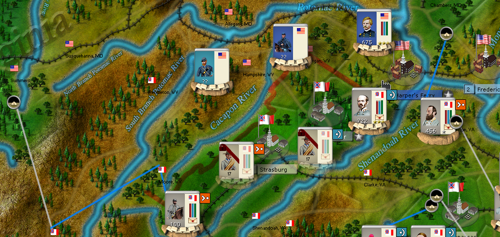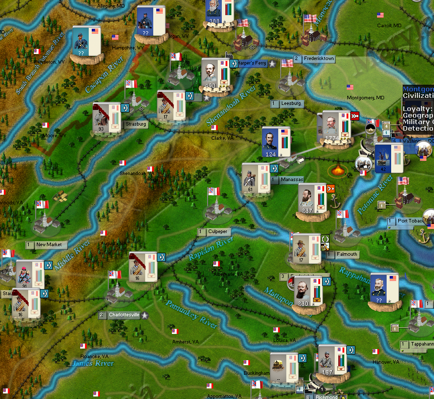 Headquarter attempts to trap enemy in Manassas. The army of Beauregard has been split in two. The general must stay with the 1st part in front of the city, making Union believe that the forces stay there too hold the city. HQ believe that Union will think that what is left moved away to West Virginia to Johnston’s army, but in fact, hiding in the city. HQ hopes that Union will attack and get decimate on this strong position. On the same time, if the plan doesn’t work, Jackson and the troops recruited in Richmond are traveling to Manassas witch should give CSA a large army, able to force Alexandria defenses.