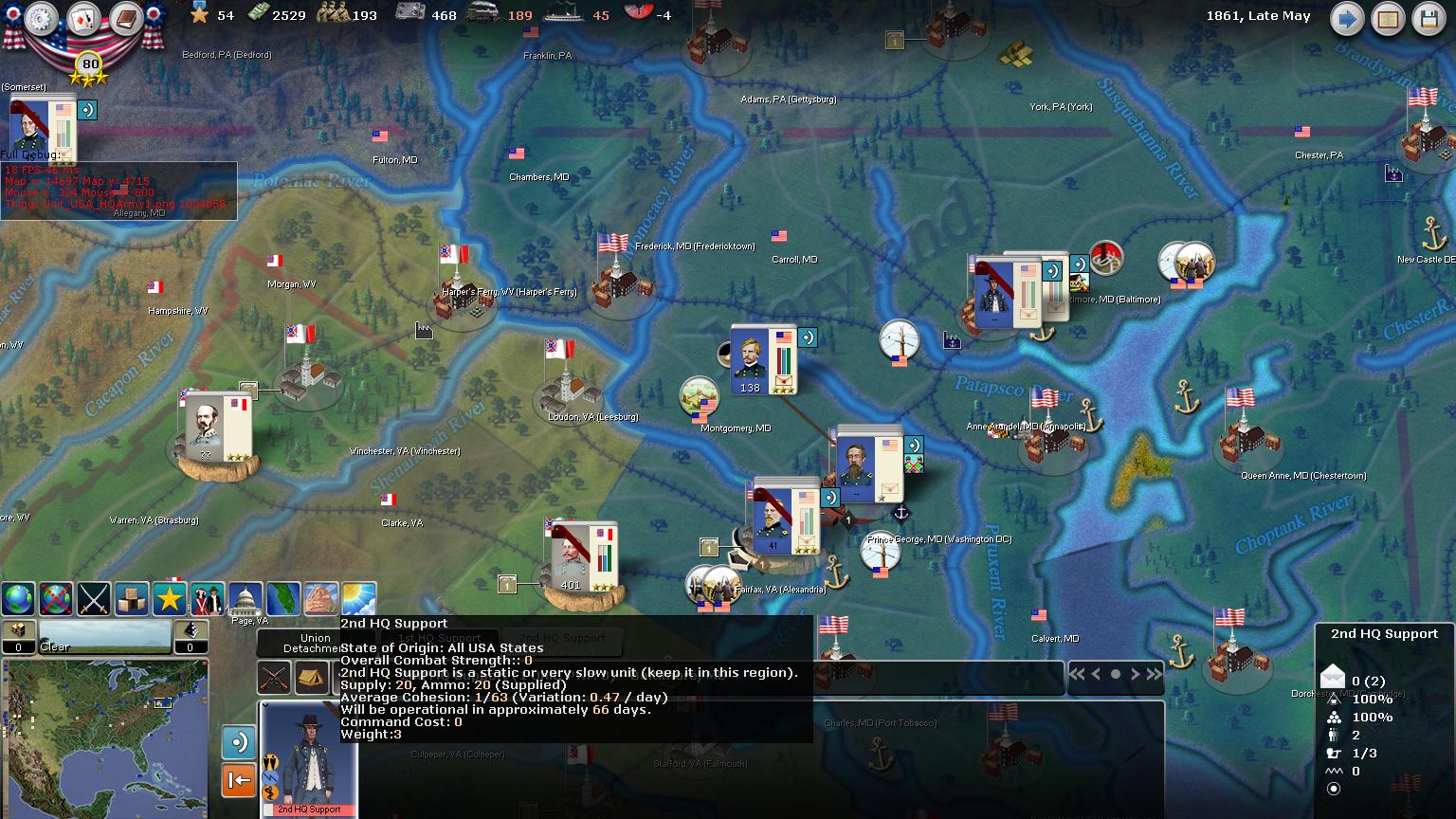 Montgomery MD will be a good place to put the Army of the Potomac to create our right flank for our operations into Virginia. Putting an outpost here looks realistic to support defenses of Baltimore in time.