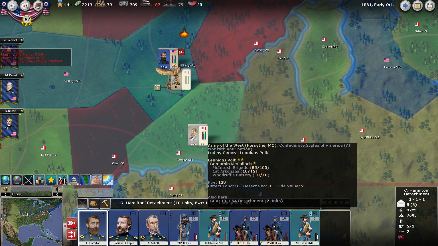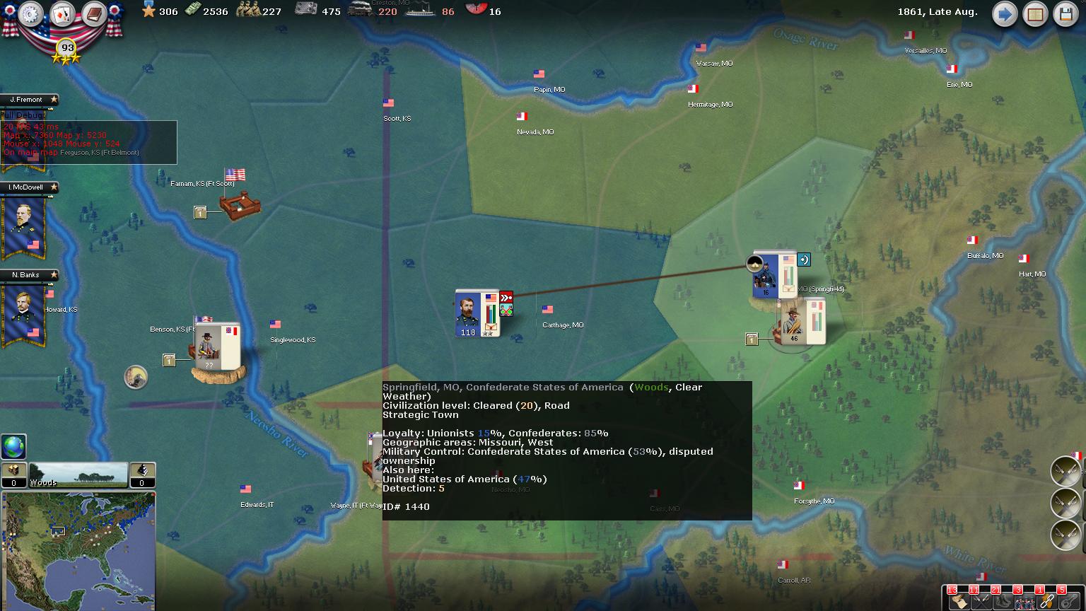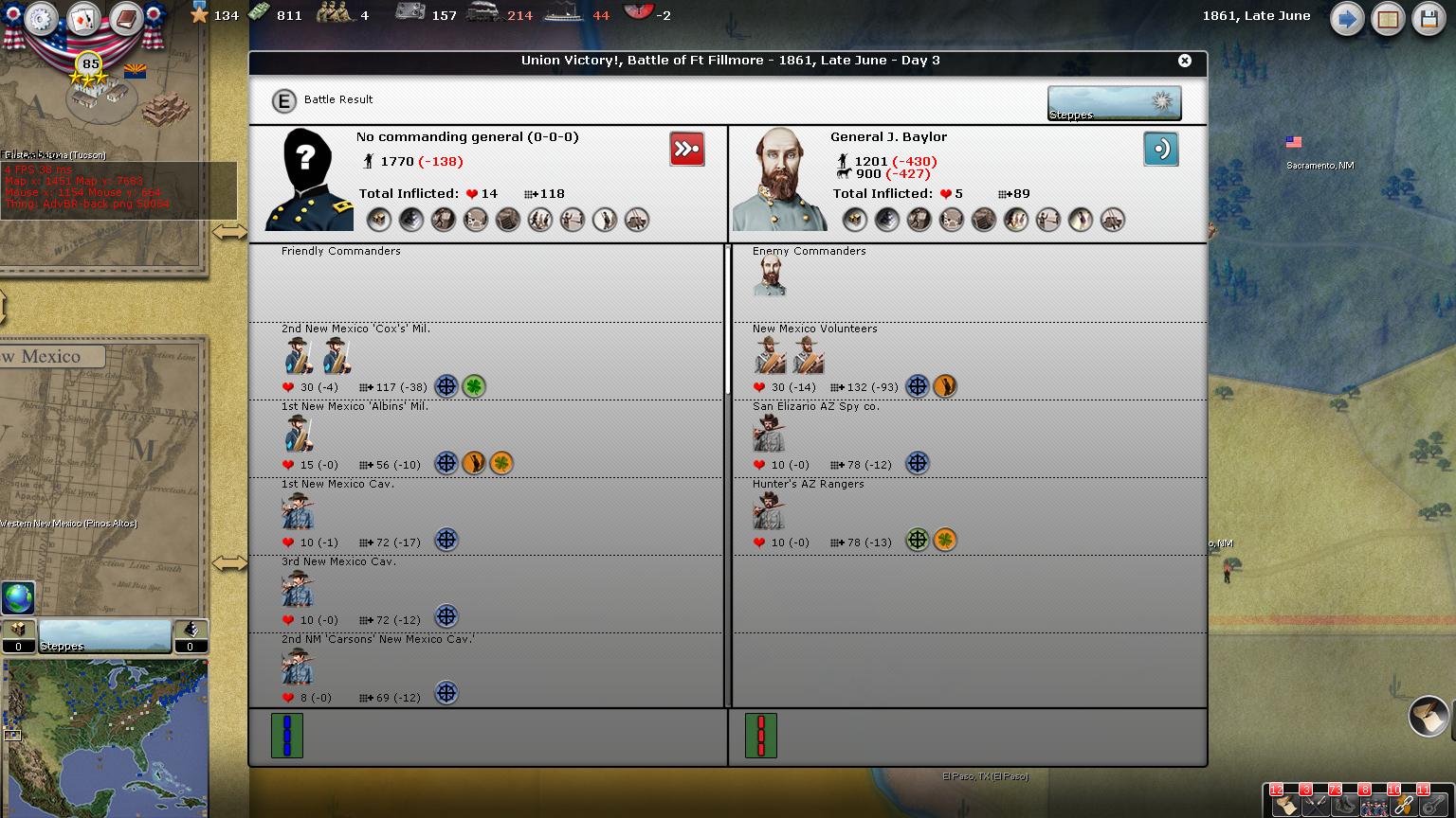 To get the upper-hand in the far West, we will build forces and sweep through New Mexico and into El Paso which is a strategic hold. Tuscon is also a possible city to invade in the near future.
