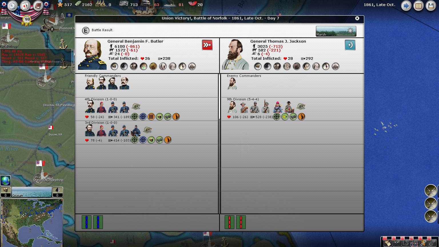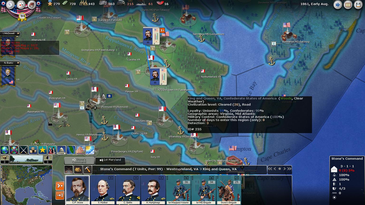 When Williamsburg falls, this is a direct shot to the outskirts of Richmond. Lets see what the Rebs do to counter Stone if they even pay attention to him.