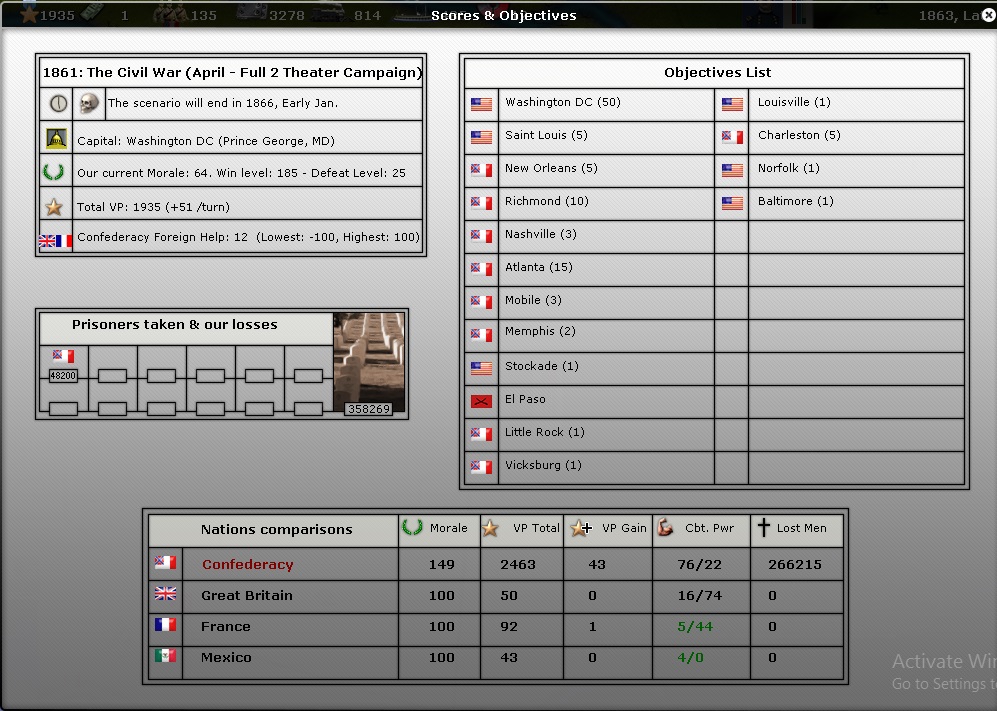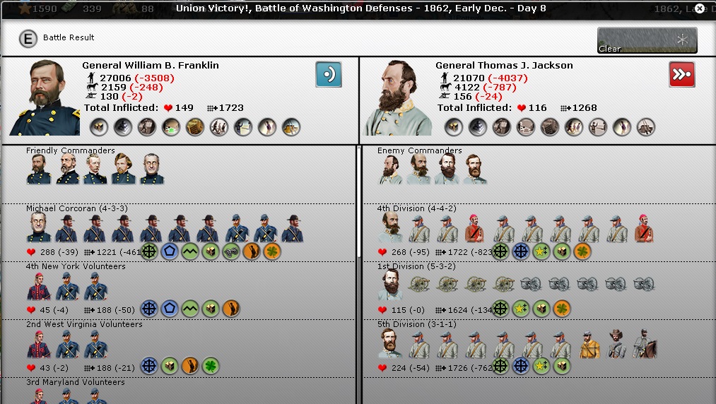 You also have the potential to raid Illinois/Indiana/Ohio. You clearly had reserves in Richmond and Nashville, my hope is those are depleted and you are forced to contract soon in the West and that you are overstretched in Virginia. Here is my grades for you: