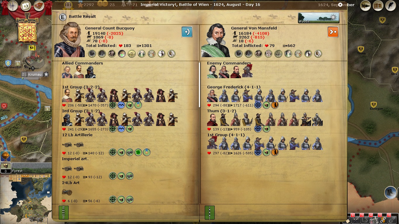 I will continue to play the game through until I get Wallenstein and Bucquoy back home safely, but won't post any further until the situation has stabilized.