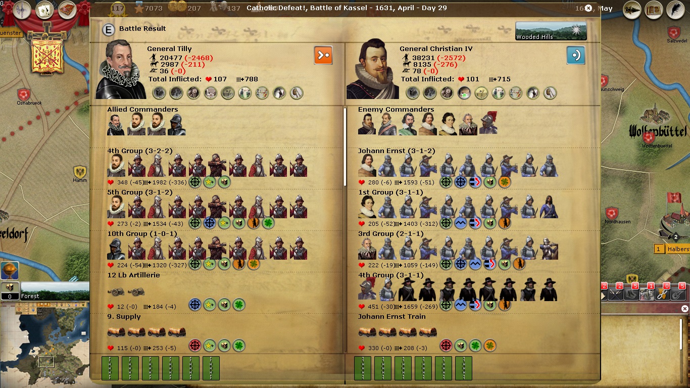 The combined Protestant forces outnumbered Tilly badly and that, along with prepared positions and some excellent tactical leadership on the part of the heretics, was enough to send him packing. He will retreat to regroup, restore his forces and gather supplies. It may have been a defeat but it is only a matter of time before the Protestants are defeated. They have no money to buy replacements and Christian IV long ago spent his war chest. Unless the Protestants receive additional assistance soon their cause is doomed.
