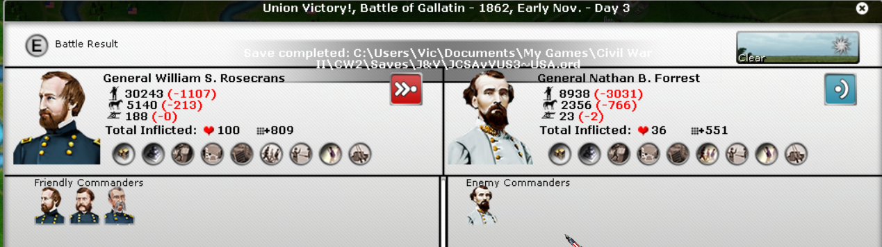 However, there are signs of life still within the Union. Two battles. Union win both.
