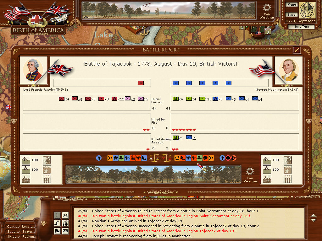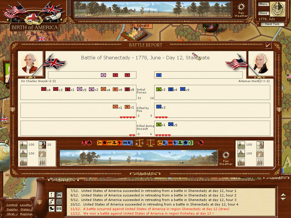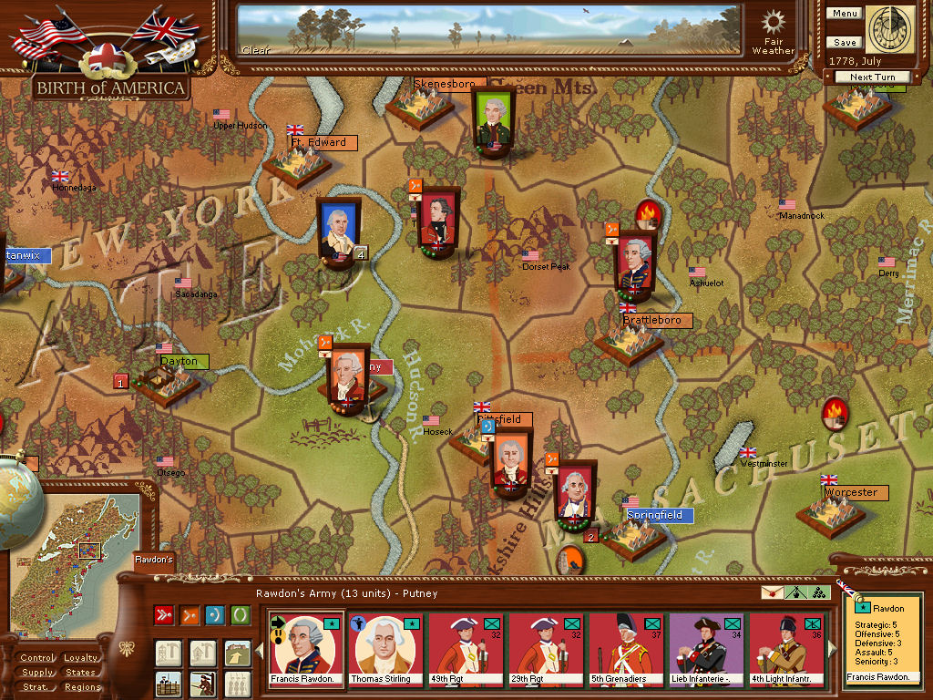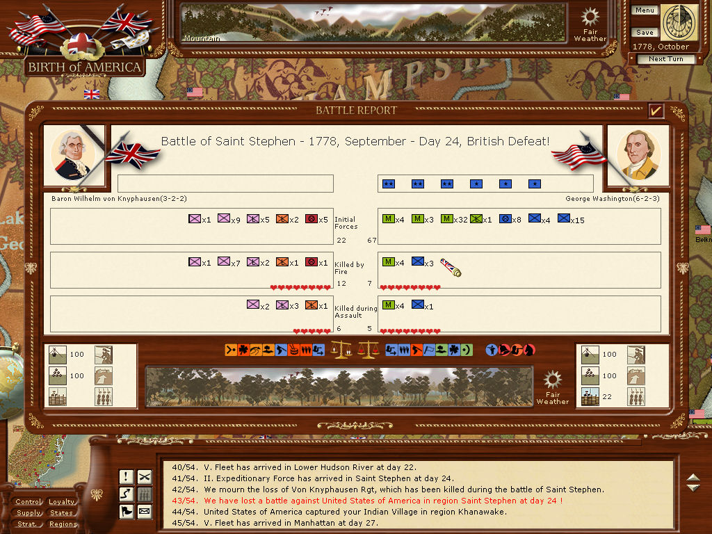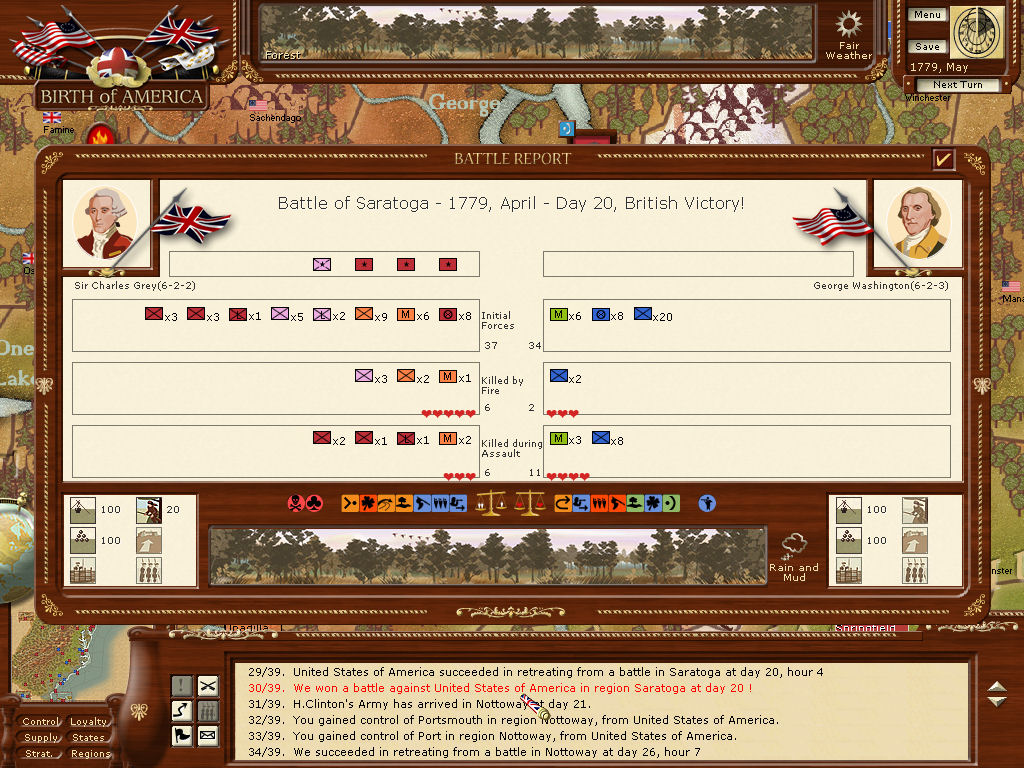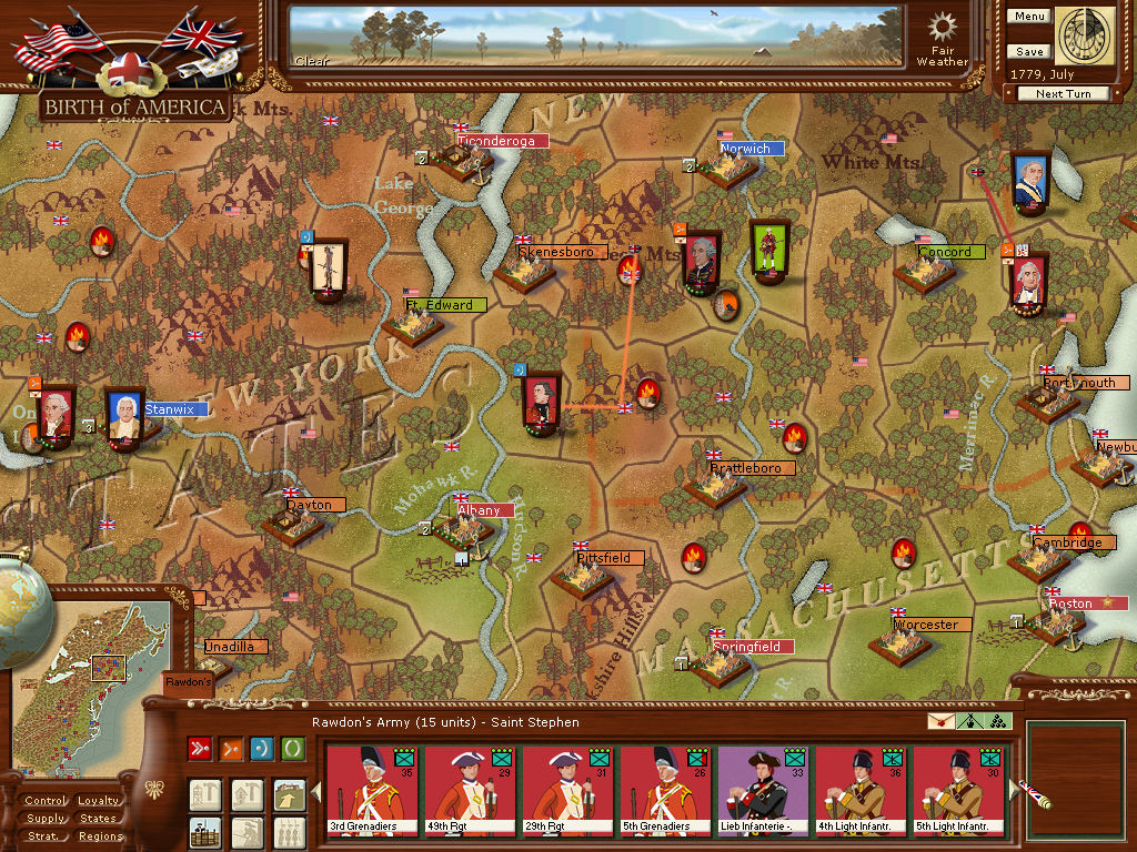 I will attempt to salvage the situation around Montreal and pursue Washington near Brattleboro. I have substantial forces within striking distance of Albany.