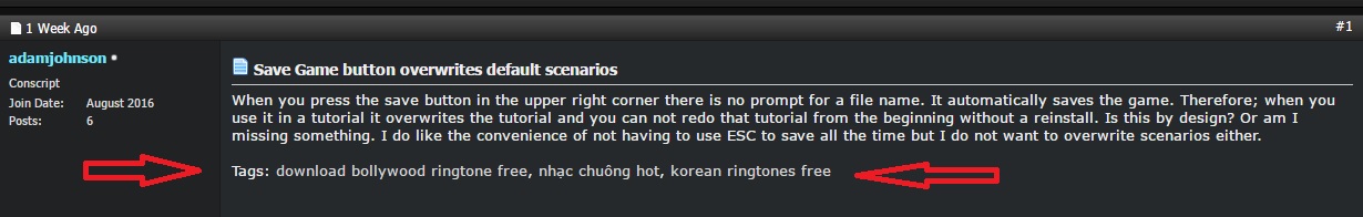 I'm not sure where you got that idea. I wasn't aware of adamjohnson's so-called 'Tags' until just now. Those 'Tags' appear to be in his signature, so they will appear in every post he posts.