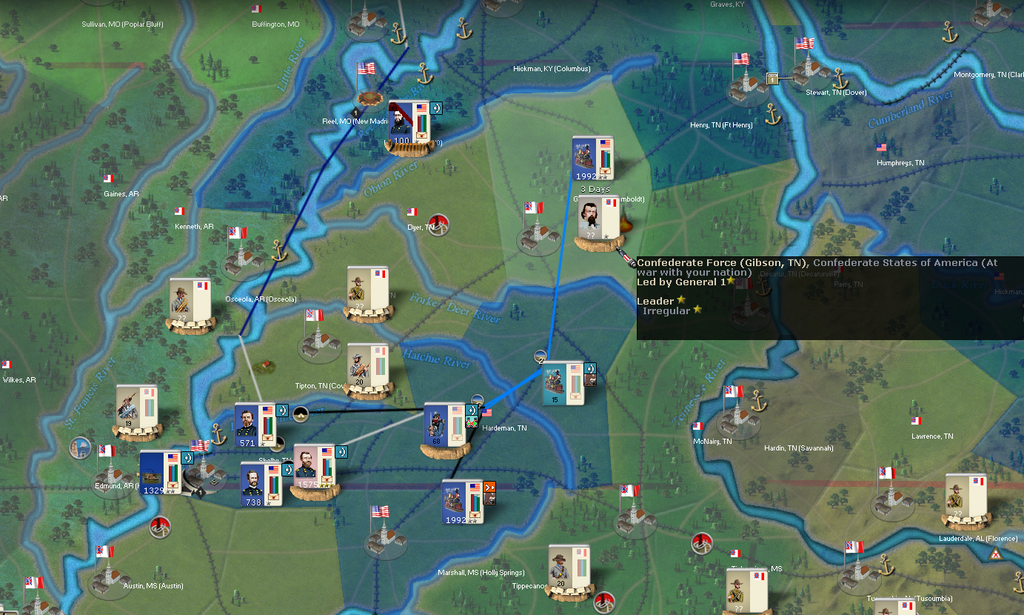 Cardinal Ape wrote:Yes, if you give up Donelson and Nashville then Corinth becomes the likely next target. However, if your defense is centered around Memphis, you could have a corps in both Memphis and Corinth, with an army between them in Hardeman, supporting both regions.