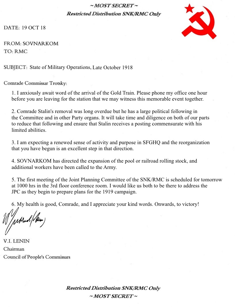 andatiep wrote:Like it is said in his biography unit tooltip and in the relative event log if there is a Bolshevik dictatorship option activated, Muraviev was SR and did rebel with the SR coup and was shot for this. In this AAR, Ripster8 did chose the Option "Reds stay united, No SR Coup", so Muraviev could not be a zombie since he never gave a reason to the Bolsheviks to shot him (at least at this stage of the revolution![]()