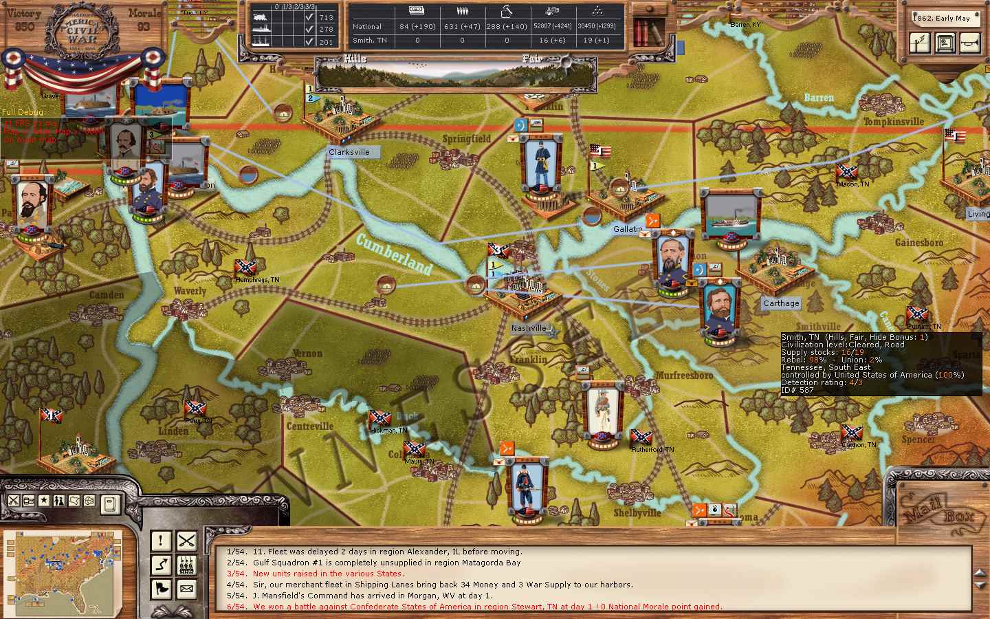 I'm playing CSA in a PBEM game, it's may of '62 and I put a line of gunboats from forts Henry & Donelson to Lower Cumberland, protecting weakly garrisoned Memphis while bulk of my army is busy getting slaughtered elsewhere.