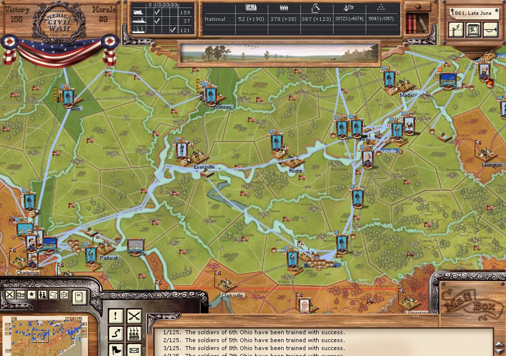 [SIZE="3"]Louisville, KY[/size] – Polk’s debacle, if it could be called that, caused the state of Kentucky to reaffirm its favor with the Union. Capturing Bowling Green surely would have hampered the Union’s advance and caused significant supply issues. Perhaps the CSA thought the risk was warranted, given the fact the Union was posed to strike at CSA held cities. So why didn’t the Union attack.