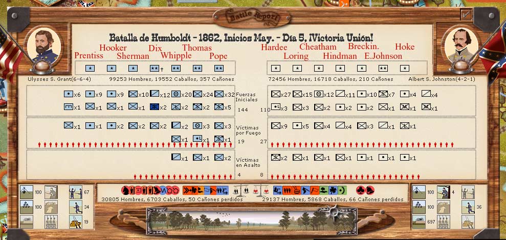 The result has been the anihilation of most of the Mississippi army (CSA) and half of the Tennessee one (US) including Pope's and Berry's forces in just 15 days. There were three battles, but I guess we should consider them the result of 15 days fighting in the area.