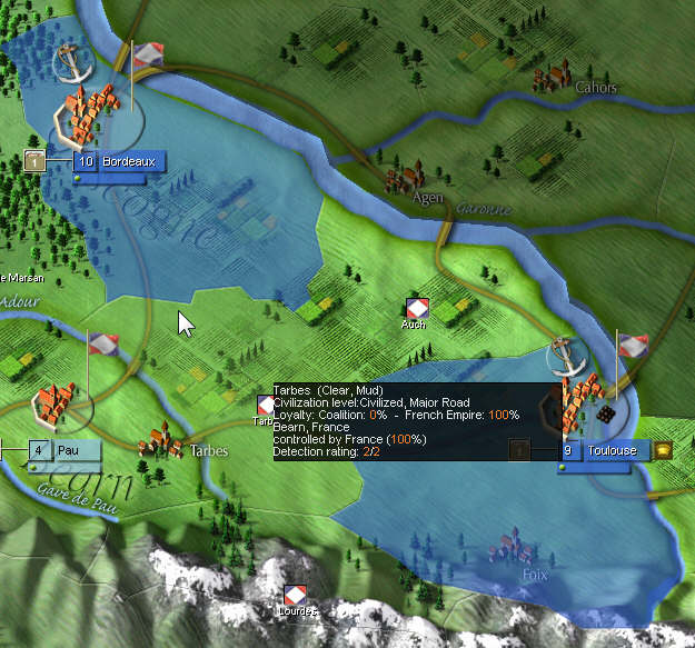 Edit: just noticed that Cordoba is not s atrategic town? And Burdeos (Bordeaux)? It is highlighted too, look at picture 2. I am confused now, when you click the button, then should be showed in blue or yellow the cities that appear in the objective list, is this right or am I missing something?