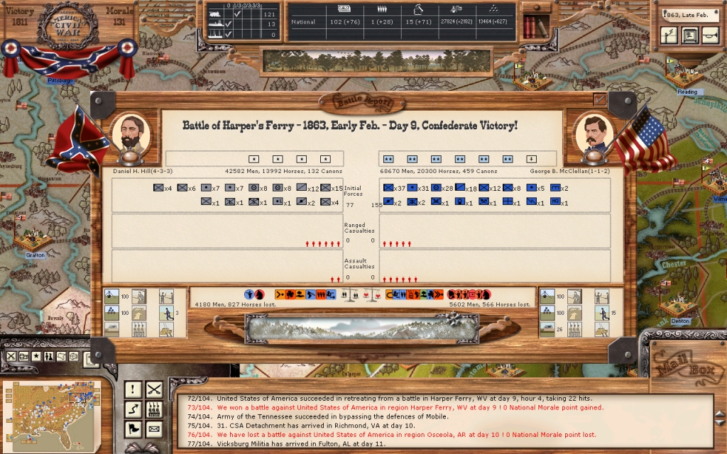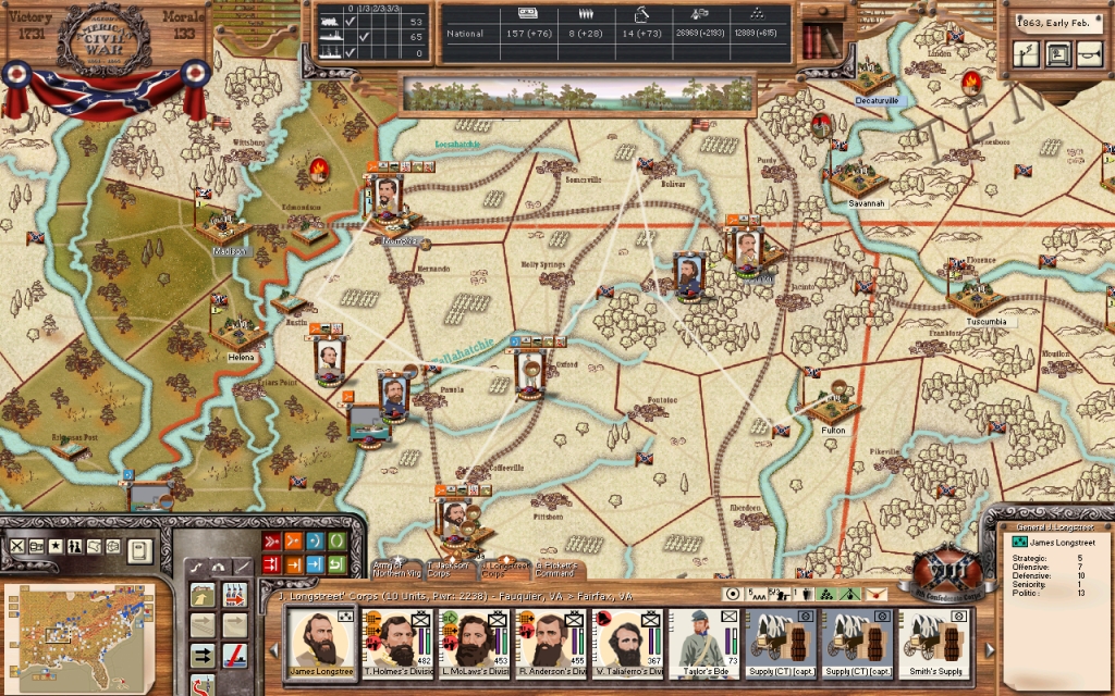 In that time, I have taken Nashville, Washington DC, and Baltimore while holding Memphis, New Orleans, Savannah, Wilmington, Richmond, Mobile, Atlanta, anc Charleston. I would call it a very successful run.