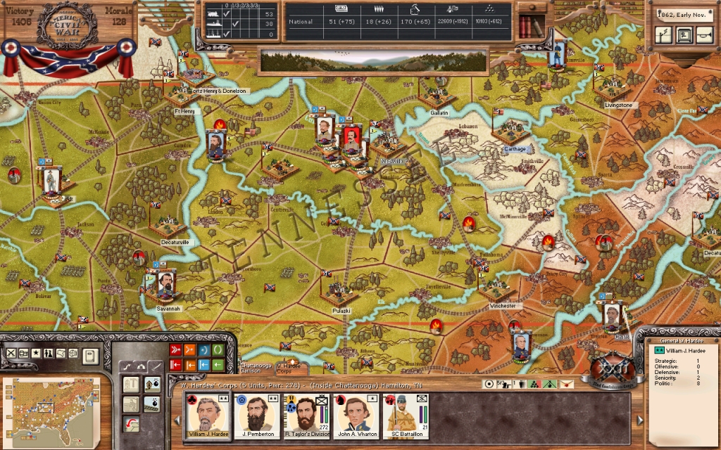I have ordered General Hindman's detached division to move on Humbolt and secure that area, while General Forrest's command was instructed to move south to Savannah, Tennessee to rest and reequip. The three corps here in Nashville, totaling six divisions, will remain in place in the coming winter months unless an opportunity to enter Kentucky and make significant gains against the enemy present itself.