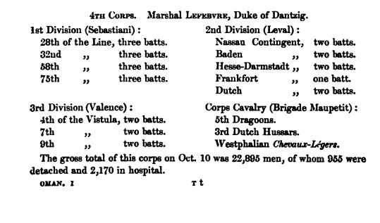 Of course this is not exhaustive, just a pair of examples and perhaps Oman is nor right ;) What book was used for the OOB of Napoleon'a Armee on his arrival to Spain?