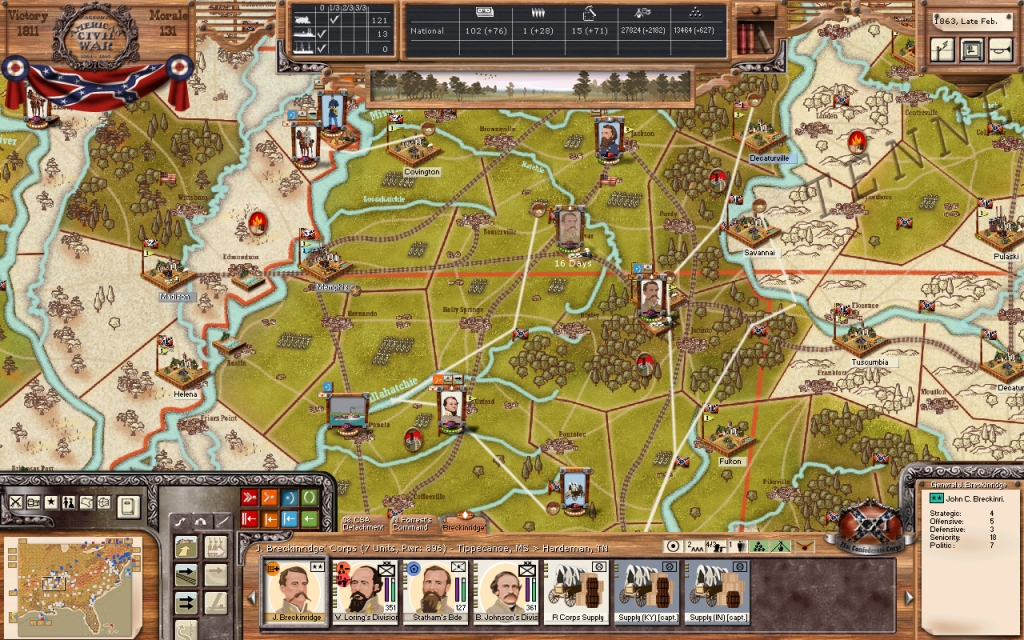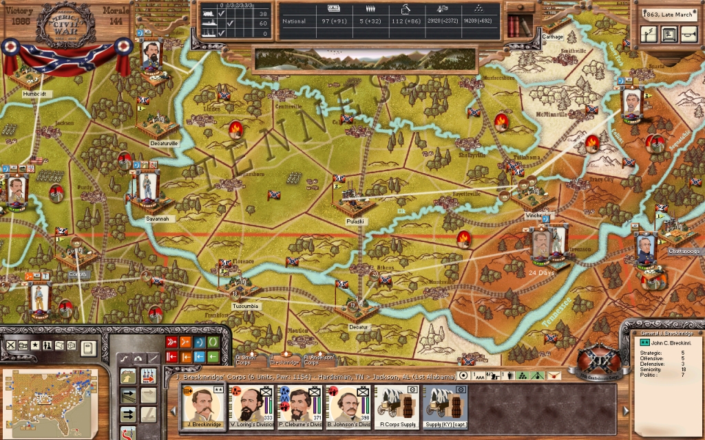 I have ordered General Hindman's detached division to move on Humbolt and secure that area, while General Forrest's command was instructed to move south to Savannah, Tennessee to rest and reequip. The three corps here in Nashville, totaling six divisions, will remain in place in the coming winter months unless an opportunity to enter Kentucky and make significant gains against the enemy present itself.
