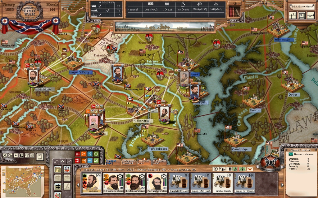 Four days later, as General Stuart was on the road towards Front Royal, the entire Army of the Potomac appeared not four miles from my Headquarters. It was well screened by cavalry, but General McClellan again left his right flank vulnerable for assault. This time, it was General Hill's Corps, with General Ewell's Division that led the way. In a series of oblique moves, General Ewell was able to position his division in a way where it was difficult to detect by the enemy, who again tried to assault our right flank.