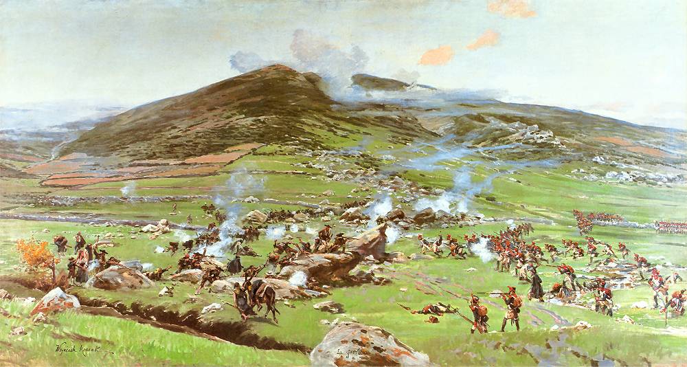 1 Wojciech Kossak (Paris, France, 1857 – 1942, Kraków, Poland). Battle of Somosierra. The first is a part of a panorama about the battle, authored too by Michałem Wywiórskim. I think, as I found this very nice picture in a polish page, where you can see the other parts of the panorama. There are too a lot of pictures more by Kossak, of the napoleonic wars and others, very interesting