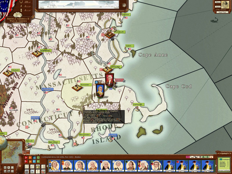 Como en el primer BoA, el Wars in America (WIA) incluye diferentes escenarios cortos y campañas largas sobre los dos grandes conflictos norteamericanos del SXVIII: