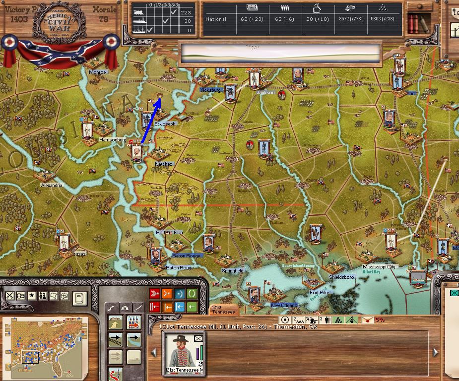 Meade attacks Longstreet, Slocum attacks Jackson. AOC attacks Atlana, AOT moves east 2 regions.