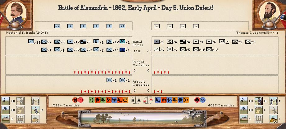 My attack on Banks didn´t go exactly as I foresee, because Hunter Corps was already moving towards Banks and joined him before I attacked, so in the end both forces were balanced in terms of power, however Banks was no match for Jackson and the Federals suffered a heavy defeat.