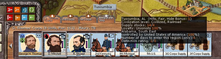 6:50:33 PM [Warning ] ULocalize.LoadLocalStrings: Alias too short at line 758 need at least 3 chars (ignored): 3.+ But what about Independent Forces? Being out of the normal Command Chain means that your command structure is not as efficient as being in a Corps or an Army stack. In game terms, it means that the leaders only generate half of their Command Points, making it far more difficult to avoid a command penalty.§Select the Independent Force at Clarksville led by General Buell.§§You’ll notice that a number pulses in red in the stack panel near an envelope.§§Click on the ‘next’ button to know more. in file: C:\Program Files (x86)\AGEod's American Civil War\ACW\Settings\LocalStrings_ScenariosACW.csv Can be a key parsed in alias itself! ($Cavalry = Cavalerie would be 3 = Cavalerie ...