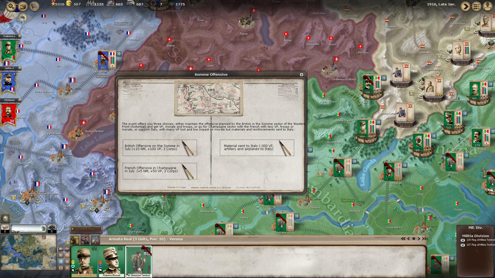 There are 1 campaign, the 1916 one, and 4 scenarios. The scenarios are really diverse in their approach and will definitively bridge a complexity gap if you are too daunted playing a campaign of EAW. Be warned, the 1916 campaign is quite a monster, but definitively manageable with some dedication. Also, the new patch has several very interesting changes, to name a few: Improved retreat logic, artillery can counter fire in battles, smart sorting of units and stacks in the forces list, dozens of events fixes and also additions (yeah!), faster turns.