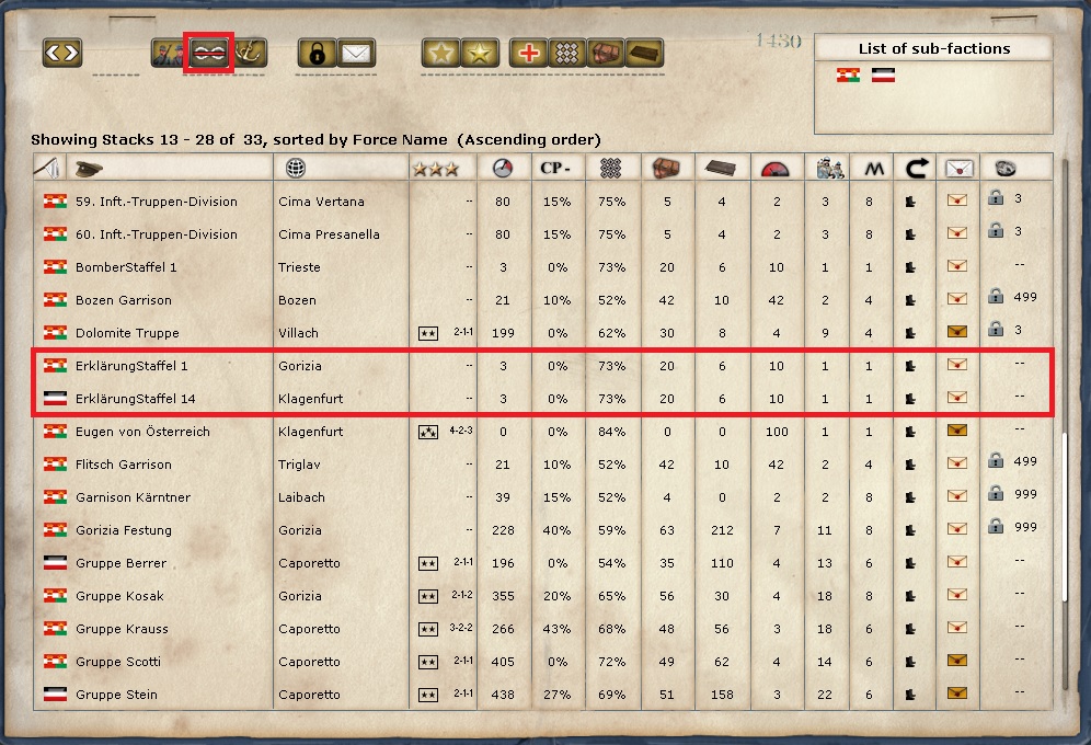 1. I hid the Air Force here, yet my two Staffel are displayed.
