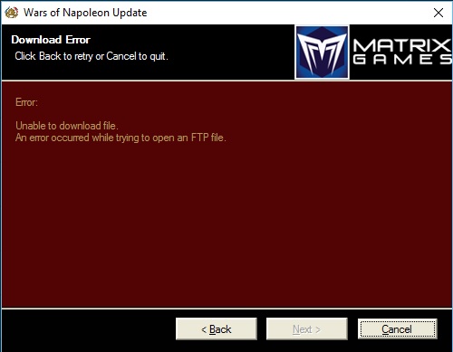 Error: Unable to download file. An error occurred while trying to open an FTP file.