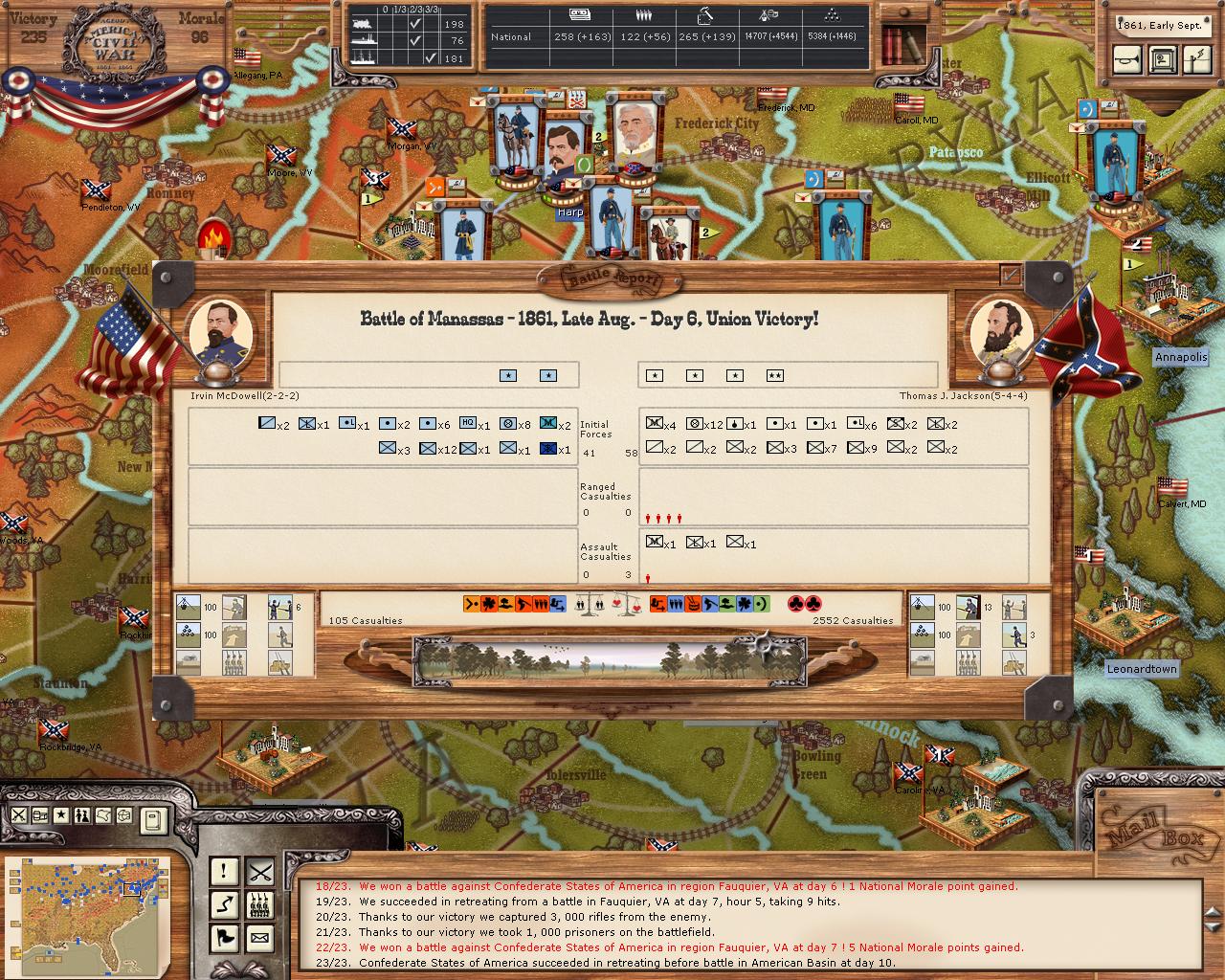 Mansfield successfully destroyed the remnants of Johnston Coprs, earning him a commendation. Promoting him at this point however would probably anger General Burnside who has a higher seniority. Johnston himself managed to flee to Winchester, where he is now besieged by Keyes and Hunters Division.